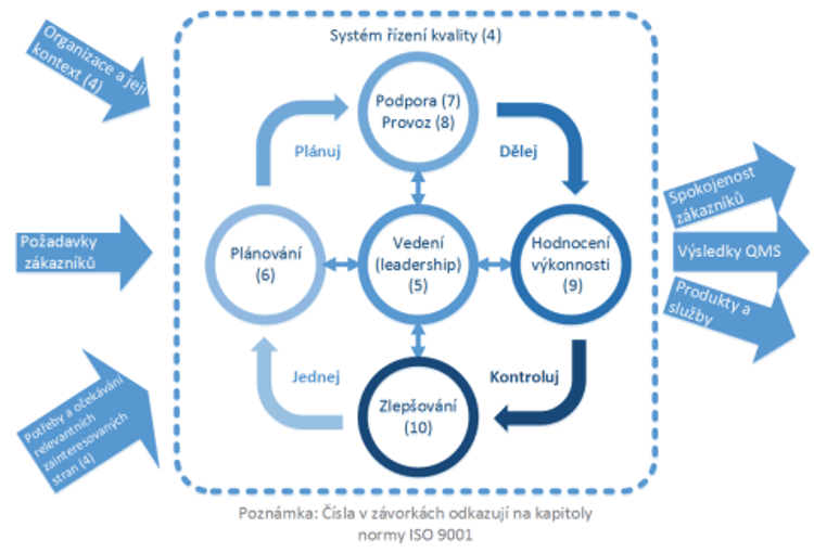 Řešení této problematiky vyžaduje odpovídající systémový a komplexní přístup, proto je základním vodítkem pro tuto oblast ISO norma ISO 9001. V roce 2015 byla publikována nová revize této normy. Jejím cílem je zapracování nových poznatků v oblasti řízení kvality a přechod na jednotnou strukturu podle Annex SL. Tato struktura je používána od roku 2011 a přispívá k zpřehlednění a identifikaci společných požadavků. Mnoho organizaci využívá více než jeden systém řízení a právě při budování integrovaného systému řízení je vhodné jednotné řešení společných požadavků norem ISO. Tým našich konzultantů je připraven poskytnout vám podporu v každém jednotlivém kroku úspěšného zavádění QMS, včetně případné přípravy na certifikaci.